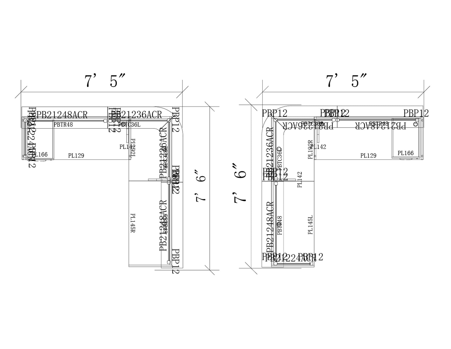 Each worksurface to be 1524mm (60 in.) L x 762mm (30in.) D