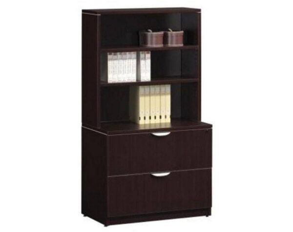 Performance Classic Locking Two Drawer Lateral File with Hutch is a stylish lateral file bookcase combination ideal for most offices. Features include PVC Dura-Edge detailing, heavy duty suspension, lock and designer handles. Lateral file will accept both letter and legal size files. Coordinates with the Classic and Classic Plus Series for added versatility.