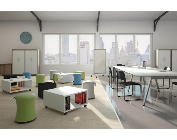 The Performance Height-Adjustable Bello Ergonomic Stool features a stable rounded base that accommodates a wide range of movement; allowing you to lean, turn and move in any direction. The backless design encourages good posture and helps strengthen the core.