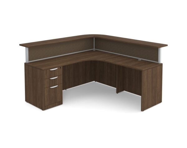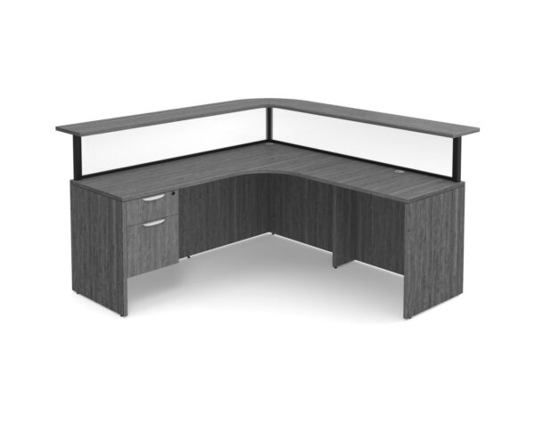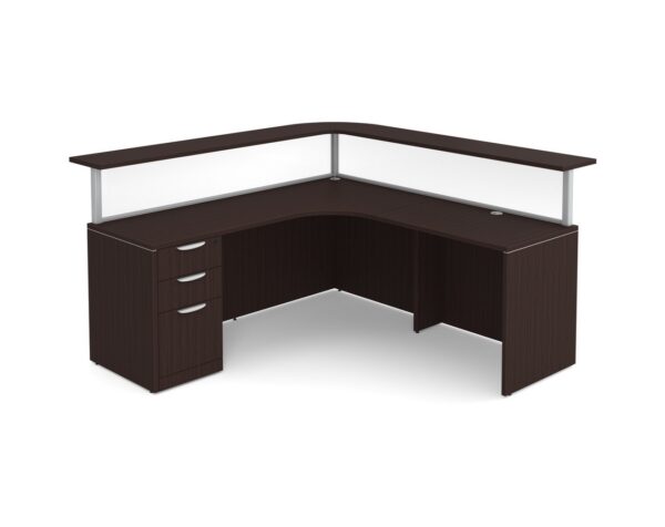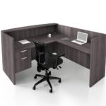 Borders reception workstation options come in multiple configurations, such as L-shape or dual-reception layouts, that are available in Aspen, Espresso, Modern Walnut or Newport Grey laminate finishes. Combined with borders privacy dividers, your reception desk will have both function and timeless style. Add a transaction top to make interactions with guests even easier.