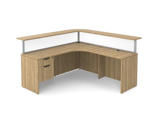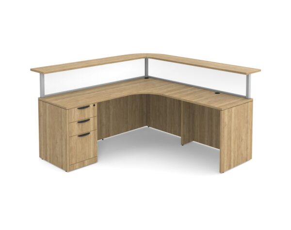 A lasting first impression starts with a great reception area and the borders reception desk with left hand return can help you achieve just that. Designed with a wrap-around panel and transaction top, this modern reception desk makes greeting visitors easy, while giving front desk team members the privacy they need.