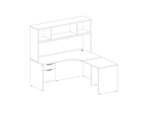 - L Shaped Desk – Radius Corner – Right Hand Return – Featuring a reversible return and attached storage pedestal, this L shaped desk gives you more than enough space to house your tech, paperwork, and more.