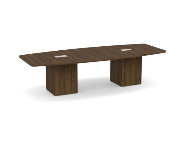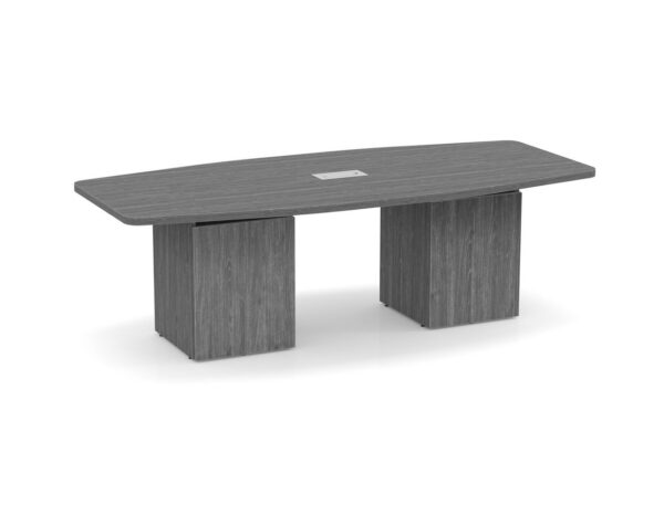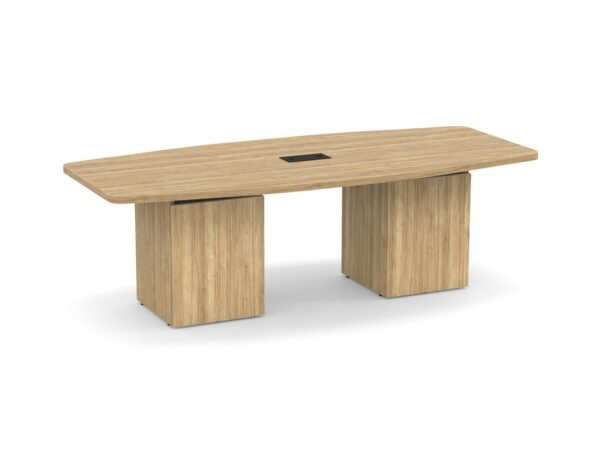 The Classic Cube Base Boat Shaped Boardroom table features a unique shape that gives all participants a clear line of sight during meetings. The cube base adds a modern touch, while discreetly organizing power and data cables to maintain a tidy boardroom setting.