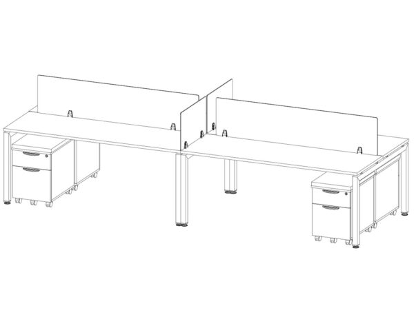 The Elements Quad Workstation spaciously accommodates four people, giving your team the space to collaborate throughout the workday. Add surface-mounted acrylic screens to create privacy and separation between each workstation.