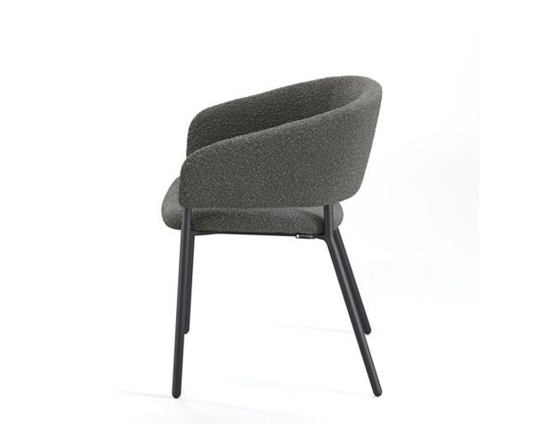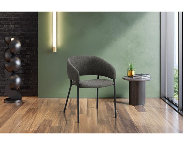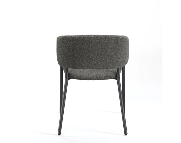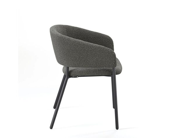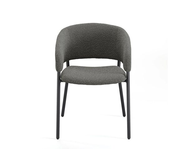 Jasmine brings a style-forward element to your office with a sleek plush bouclé fabric that’s as inviting as it is elegant. The sleek black metal frame is durable and sturdy, perfect for guest seating, reception areas, or lounge spaces that need a touch of flair and comfort.