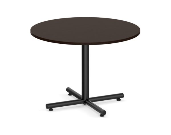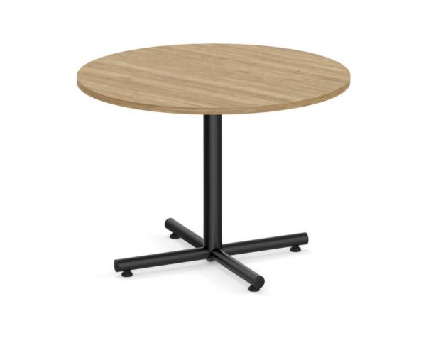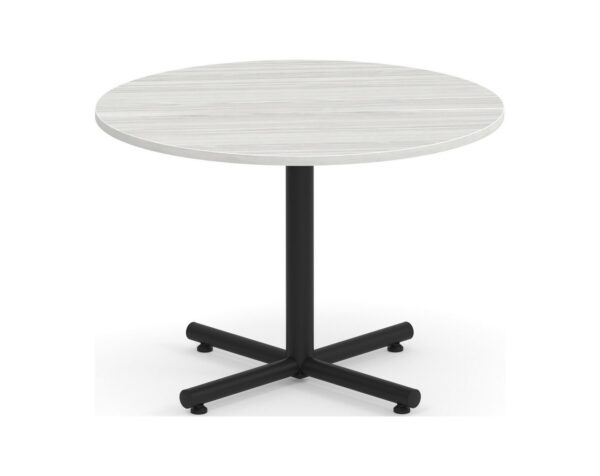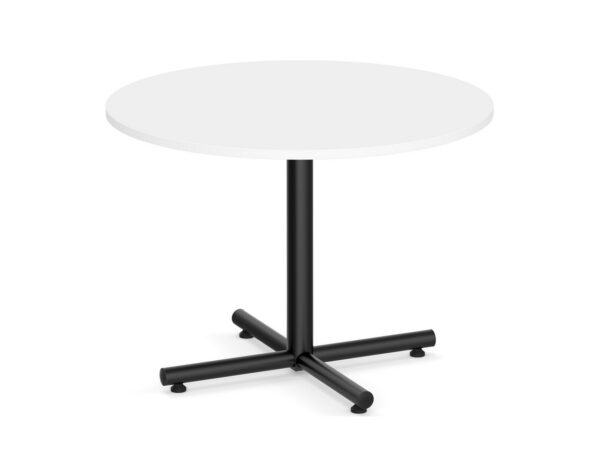 From small meetings to meal breaks, the classic round meeting table with black cross base is functional in design and offers flexibility that is perfect for break rooms, meeting spaces, lounge areas, and more.