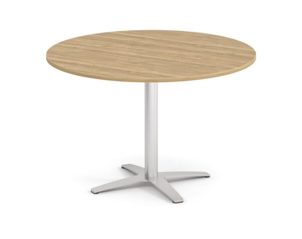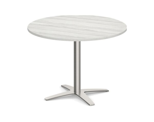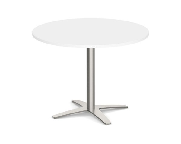 From small meetings to meal breaks, the Classic Round Meeting Table with metal cross base is functional in design and offers flexibility that is perfect for break rooms, meeting spaces, lounge ares, and more.