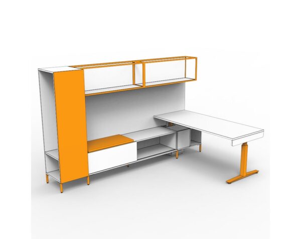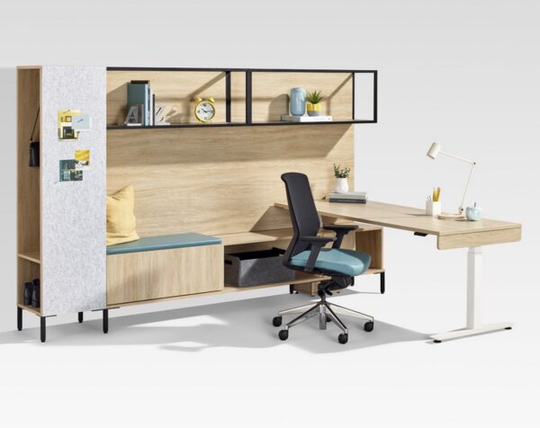 Choose from two unique leg options: A-Leg and V-Leg Seamless height-adjustable table integration Metal features available in 20 colours.