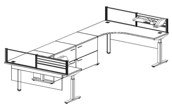 Scene features open plan design that fosters communication throughout the office, flag storage provides an elegant solution to lateral privacy in benching. Height adjustable worksurfaces , pop-up power grommets and privacy screens with secondary organizational features transform “a workspace” into “my workspace”. It fits the worker, not the other way around.